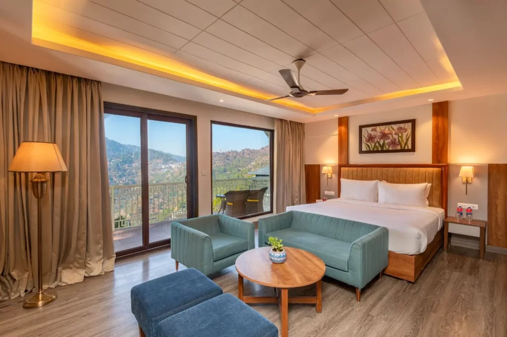 Each elegantly designed room at Ramada Kasauli features floor-to-ceiling windows that frame breathtaking views of the pristine valleys, complemented by private balconies where guests can relish their morning coffee while soaking in the tranquil surroundings.